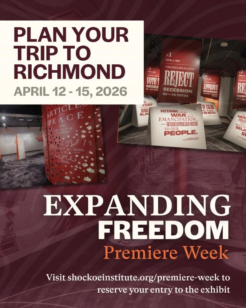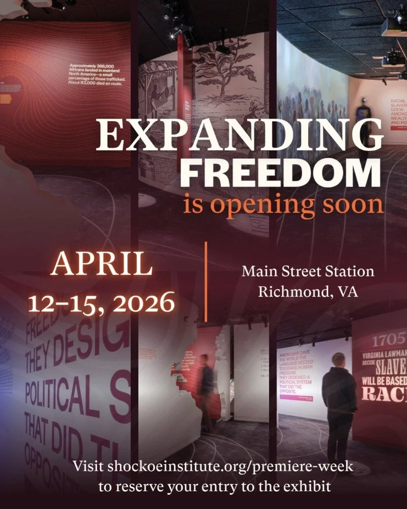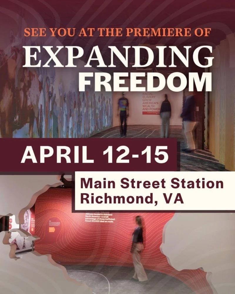 On April 12-15, 2026, the Shockoe Institute’s Expanding Freedom exhibit will premiere at Main Street Station in Richmond, Virginia.