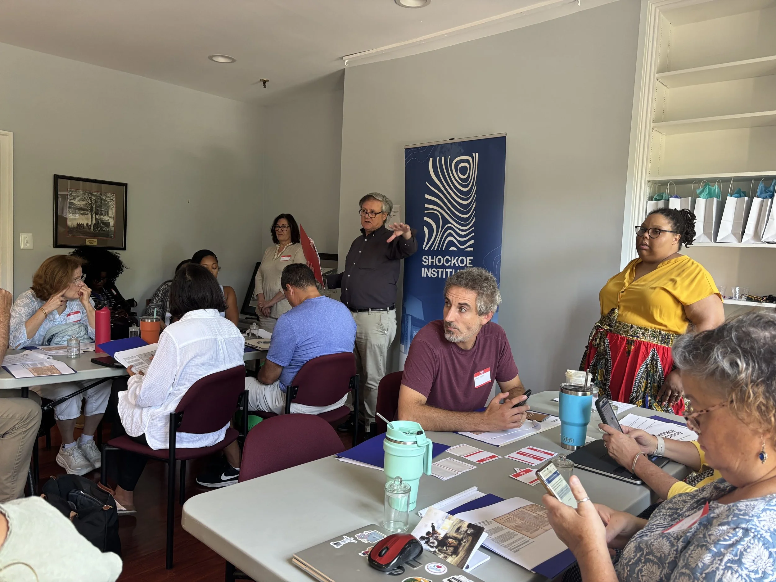 This collaborative event was designed with a specific audience in mind: history educators. Presentations not only explored key themes central to the Institute’s mission but also sought feedback from participants on how our Learning Lab can best serve the Commonwealth’s students. So, on a bright morning in early August, 18 history teachers met Shockoe Institute and Freedom House staff at the Freedom House Museum for a day of learning, discussion, and exploration.