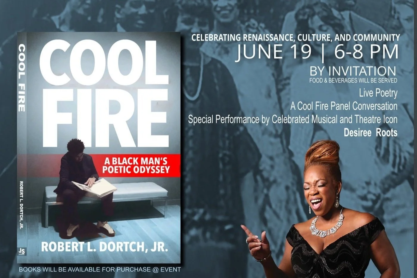 A one-night-only celebration and moving discussion, featuring live poetry from Robert Dortch’s new book Cool Fire, a powerful panel, and an unforgettable performance by Desiree Roots.